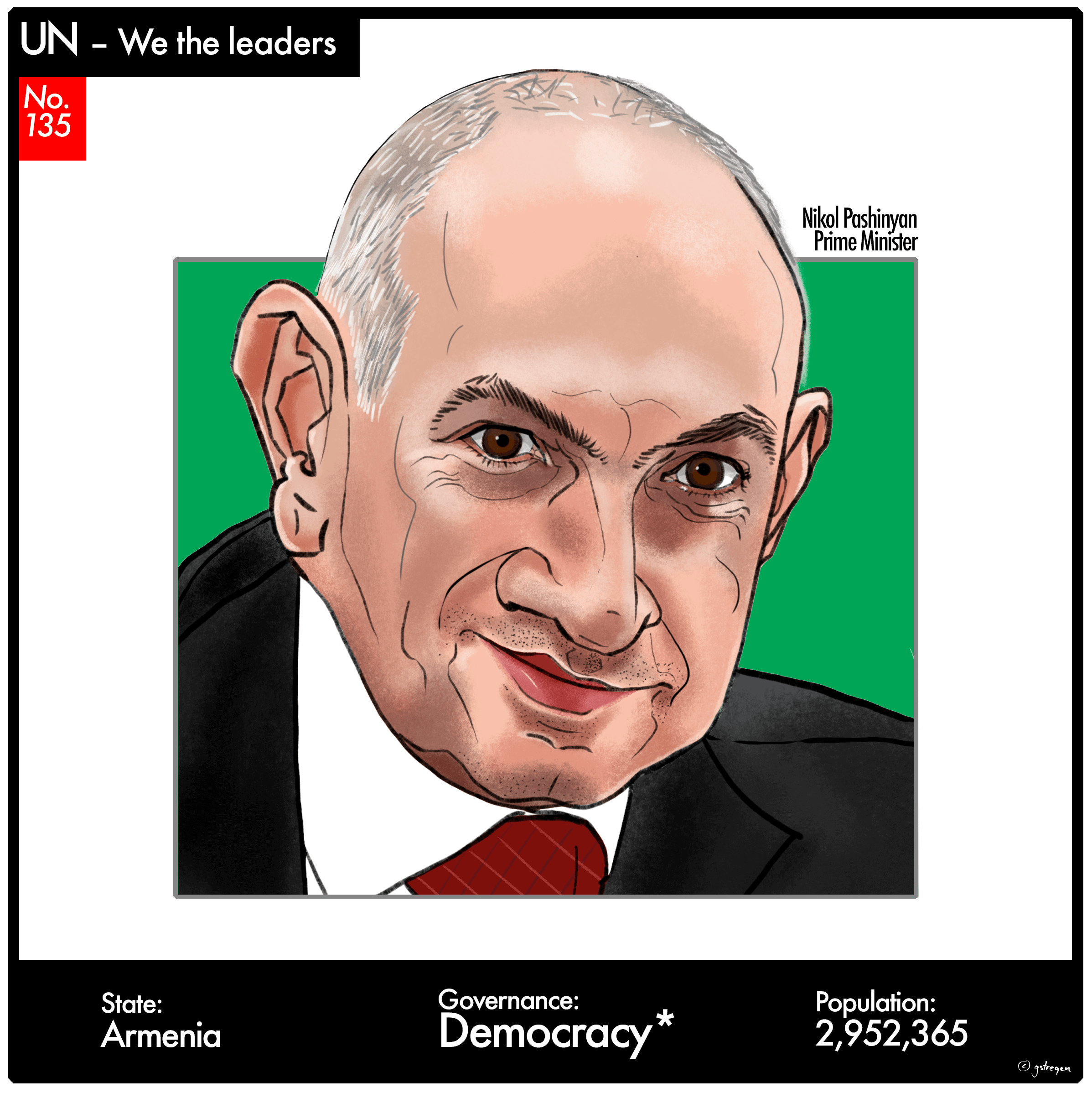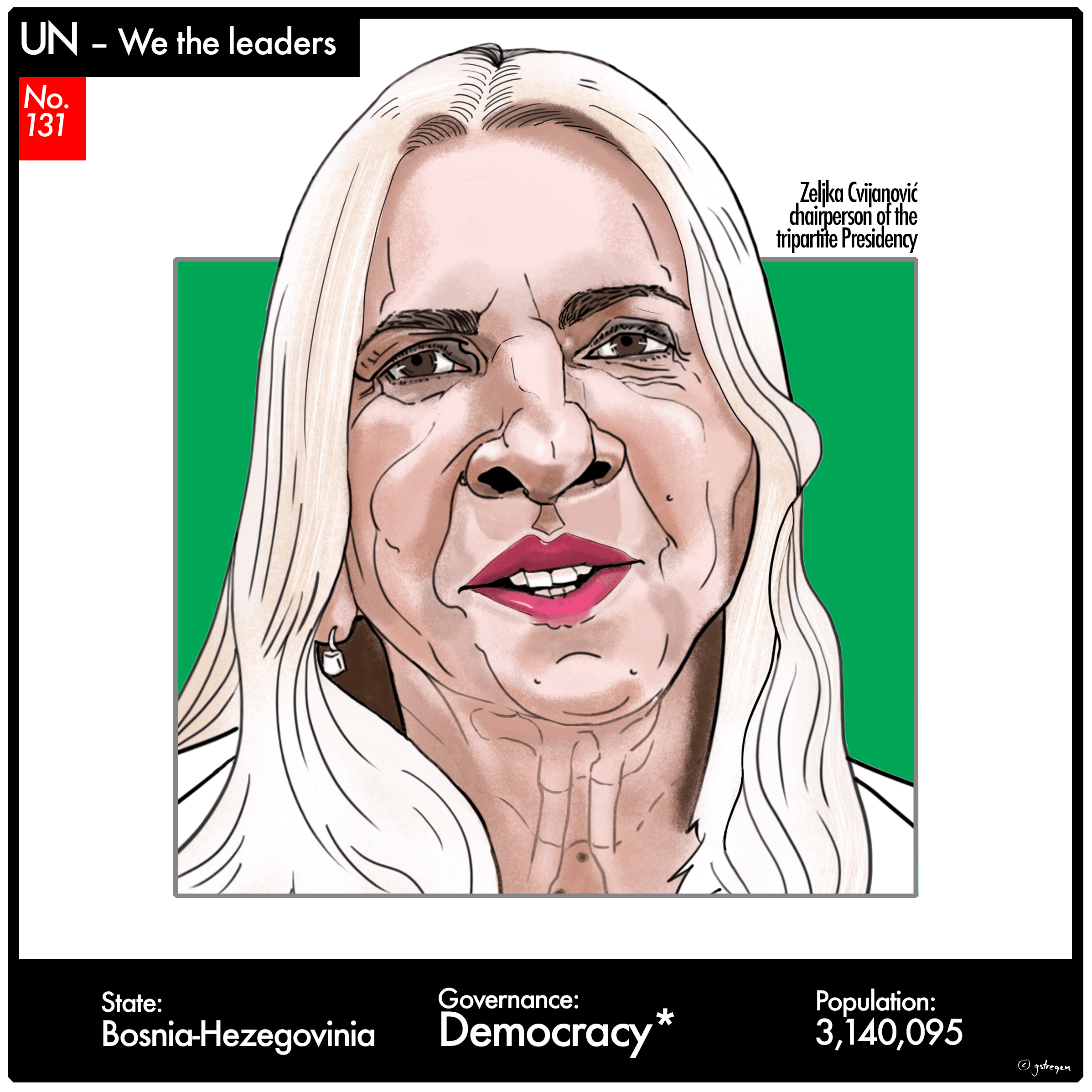 So while I’m still waiting for world peace … from my little vantage point on the third floor of a Copenhagen condominium … I have decided to portray all 193+ heads of state/government and thus – at least virtually – expand my horizon.